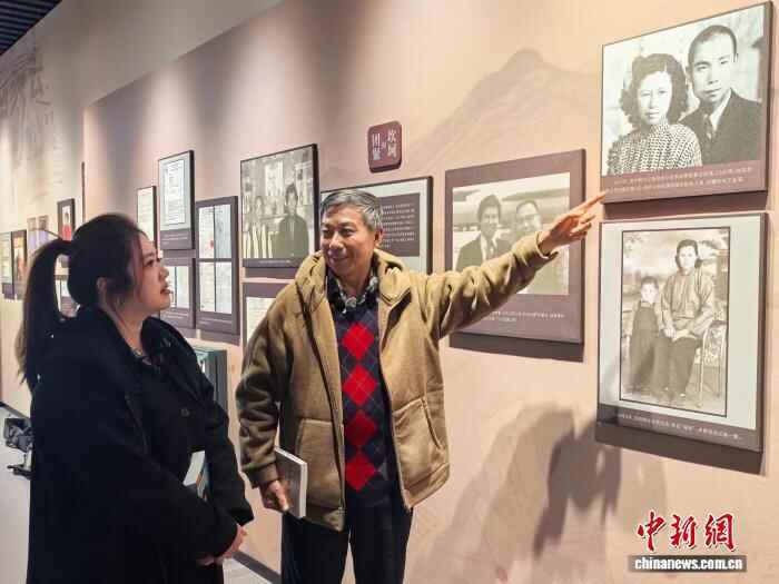 1月9日,“两岸信使”田圻畅(右)在中国闽台缘博物馆讲述自己的经历与两岸寻亲故事。中新社记者 孙虹 摄
