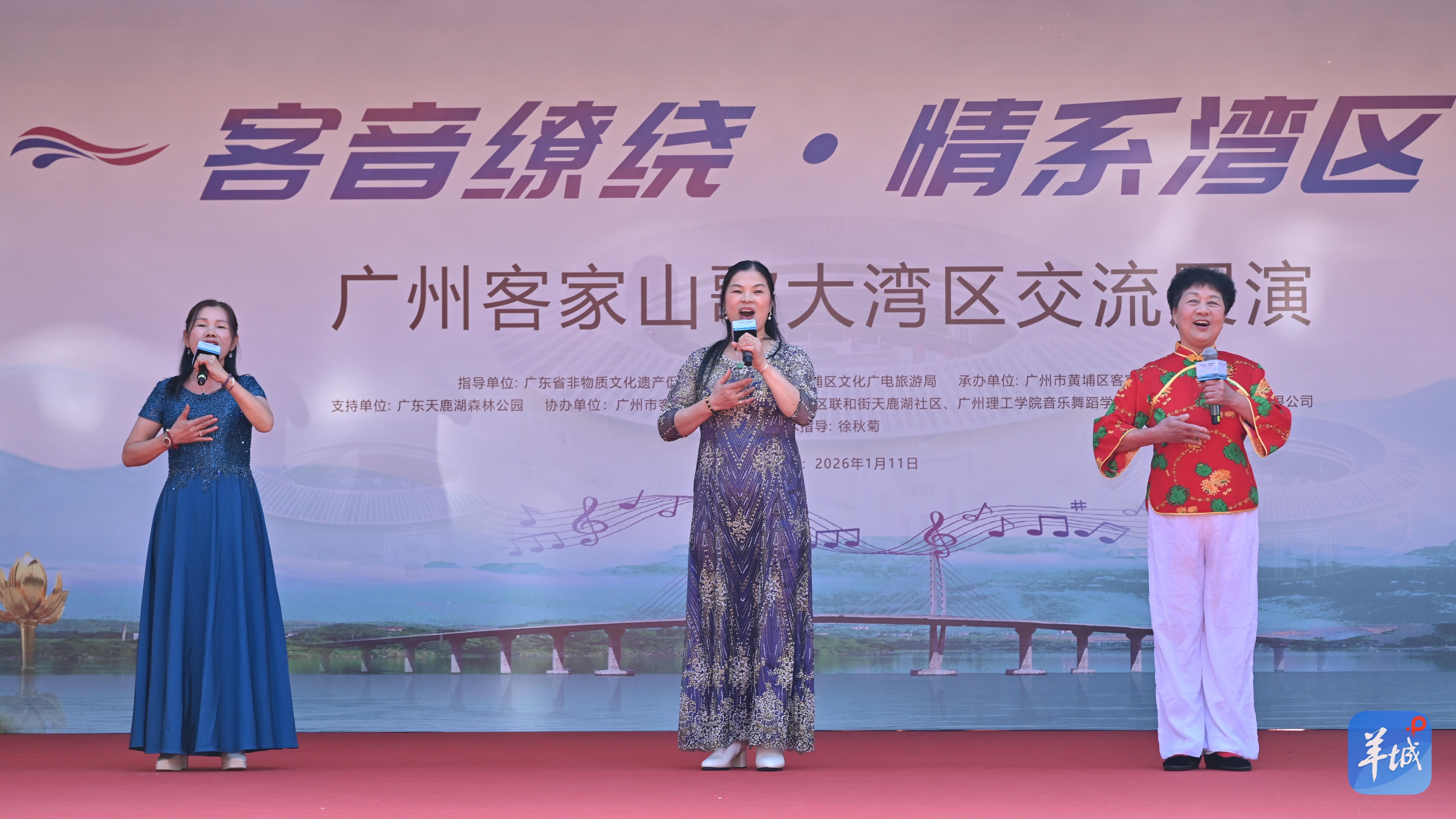1月11日,以“客音缭绕·情系湾区”为主题的广州客家山歌大湾区交流展演活动在广东天鹿湖森林公园——黄埔区“广州客家山歌传承基地”举行。来自广东广州、深圳、惠州、河源、梅州及香港特别行政区的150余名客家山歌歌手齐聚一堂,以歌为媒切磋技艺、共叙乡情。