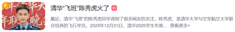 2025年12月31日,清华2025学生年度人物揭晓,陈秀虎榜上有名。此前,他还入围了清华特奖的答辩。清华大学的特等奖学金,是清华授予在校生的最高荣誉。清华特奖被网友称为“神仙打架”“能入围的全都是学霸中的‘战斗机’”。