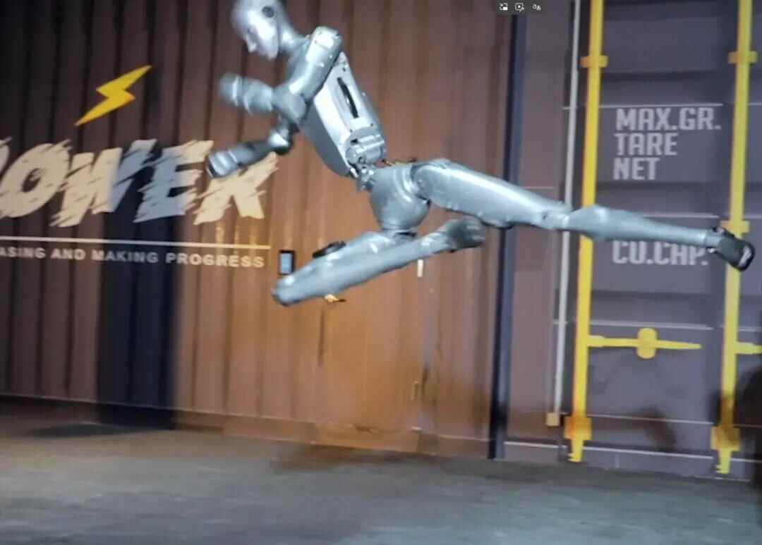 视频中,宇树机器人腾空侧踢吓退王兴兴,空中回旋踢将西瓜踢得粉碎。