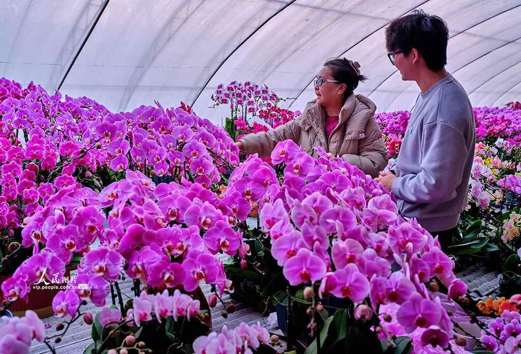 临近春节,北京各大花卉市场年宵花陆续上架,销量持续攀升,市民纷纷走进花市选购鲜花,喜迎新春、期盼新年新气象。史家民摄(人民图片网)