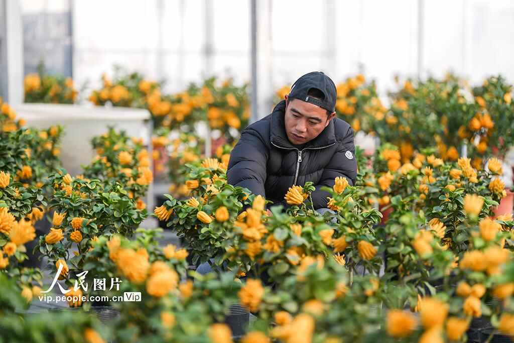 2026年1月7日,浙江金华金东区赤松镇北山口村,返乡青年正在佛手大棚内忙碌。