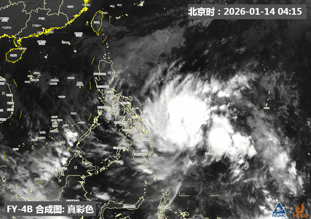 菲律宾以东热带扰动已于1月14日上午加强为热带低压,预计该低压将在原地回旋少动,未来向西北转东北方向移动,强度逐渐加强,可能于未来24小时内加强为今年第1号台风,最强可达热带风暴级(18-23米/秒,8-9级)。