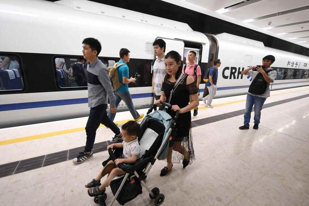 2018年9月23日,G5711次高铁列车乘客抵达香港西九龙站。新华社记者 毛思倩 摄