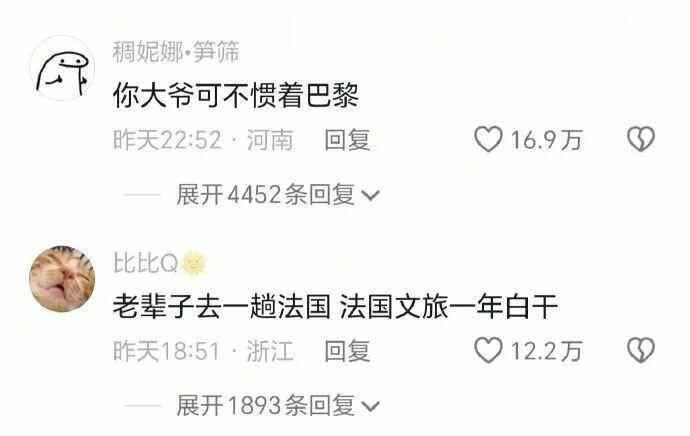据大象新闻此前报道,近日,河南一位大爷去法国旅游,实拍的无美颜、无滤镜巴黎照片火遍全网,埃菲尔铁塔被调侃像“电线塔”,塞纳河被戏称为“村头水沟”,相关话题“大爷拍的素颜巴黎火了”也登上热搜。