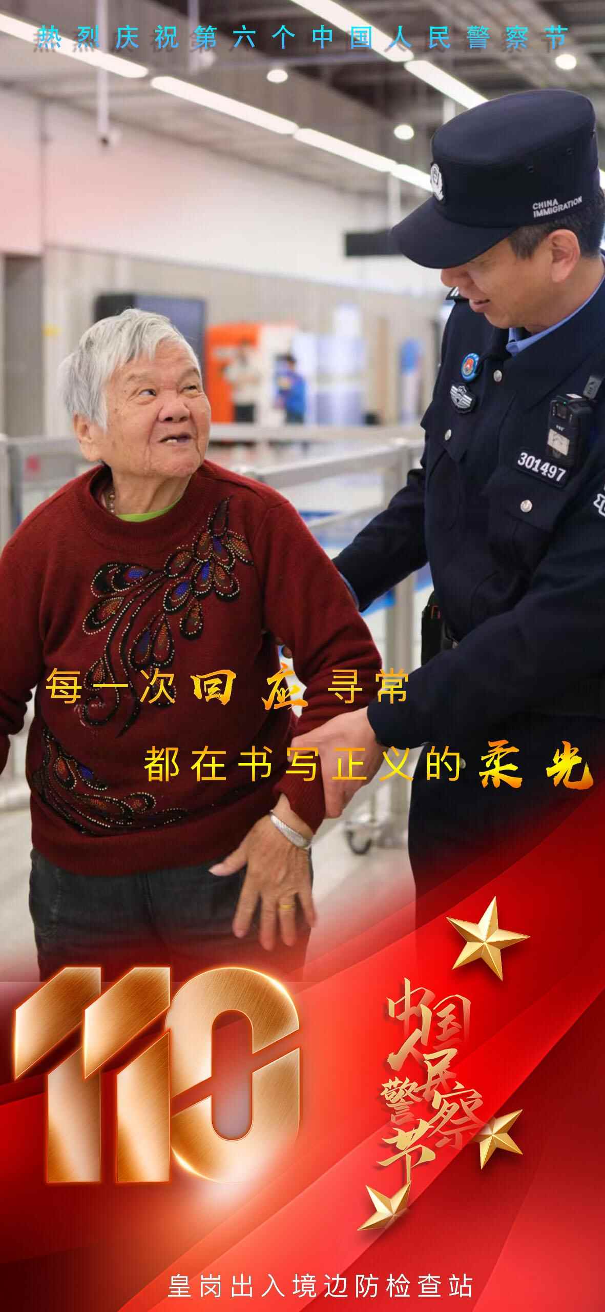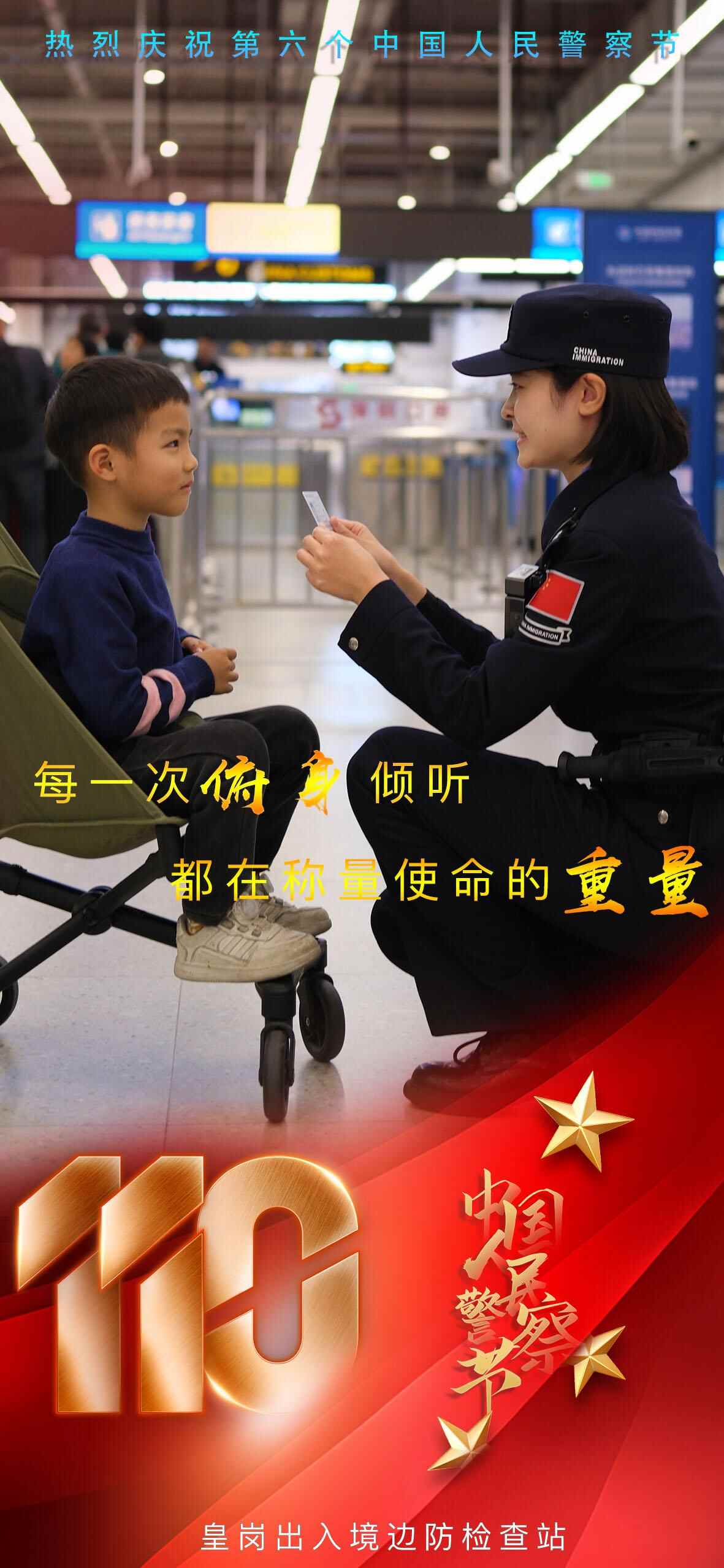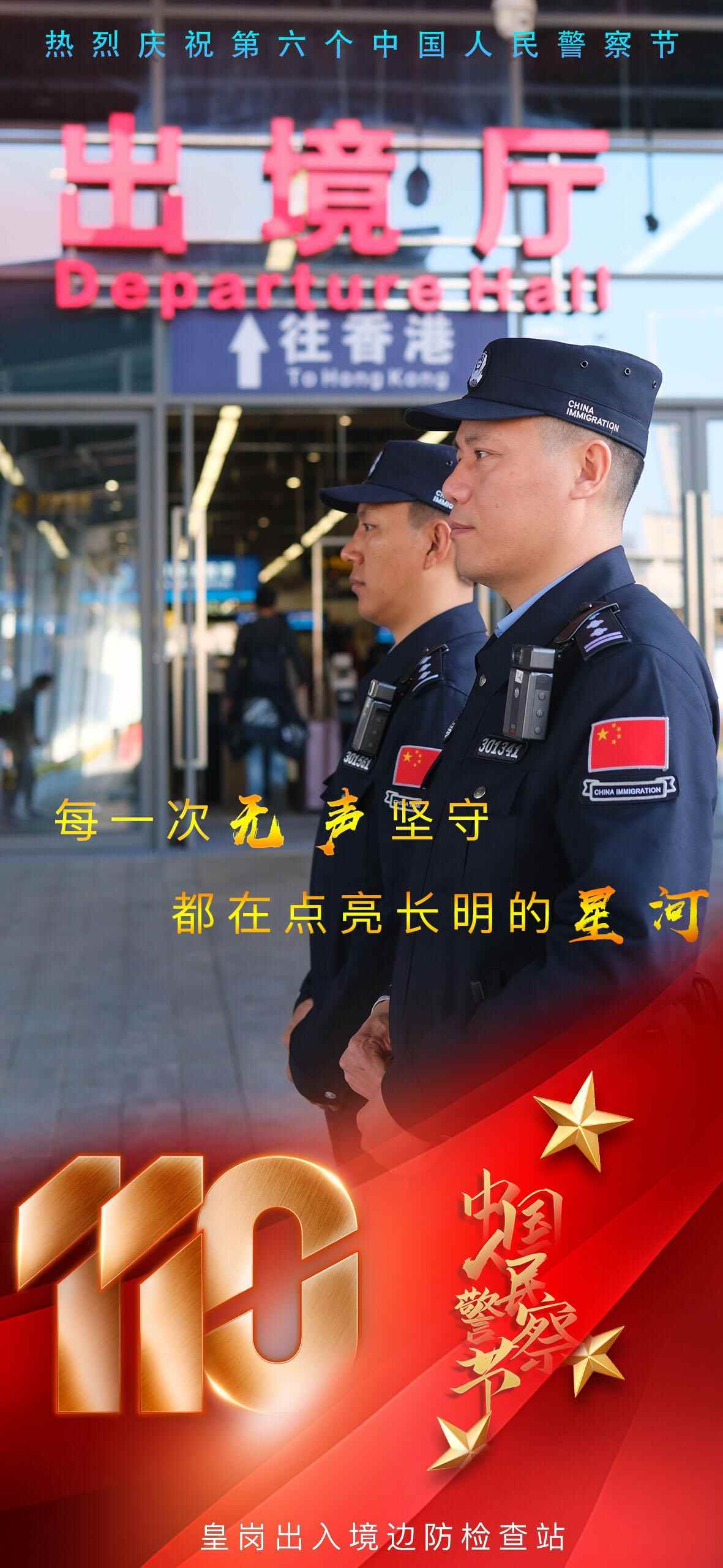 近日,深圳皇岗边检站发布一组海报,以此庆祝中国人民警察节,致敬每一位守护国门的移民管理警察。