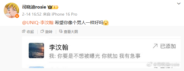 都市现场记者查询发现,2025年2月18日,自称李汶翰前女友的博主司晓迪在社交平台发文,晒出其与男星李汶翰的聊天记录,疑似暗指其抠门。