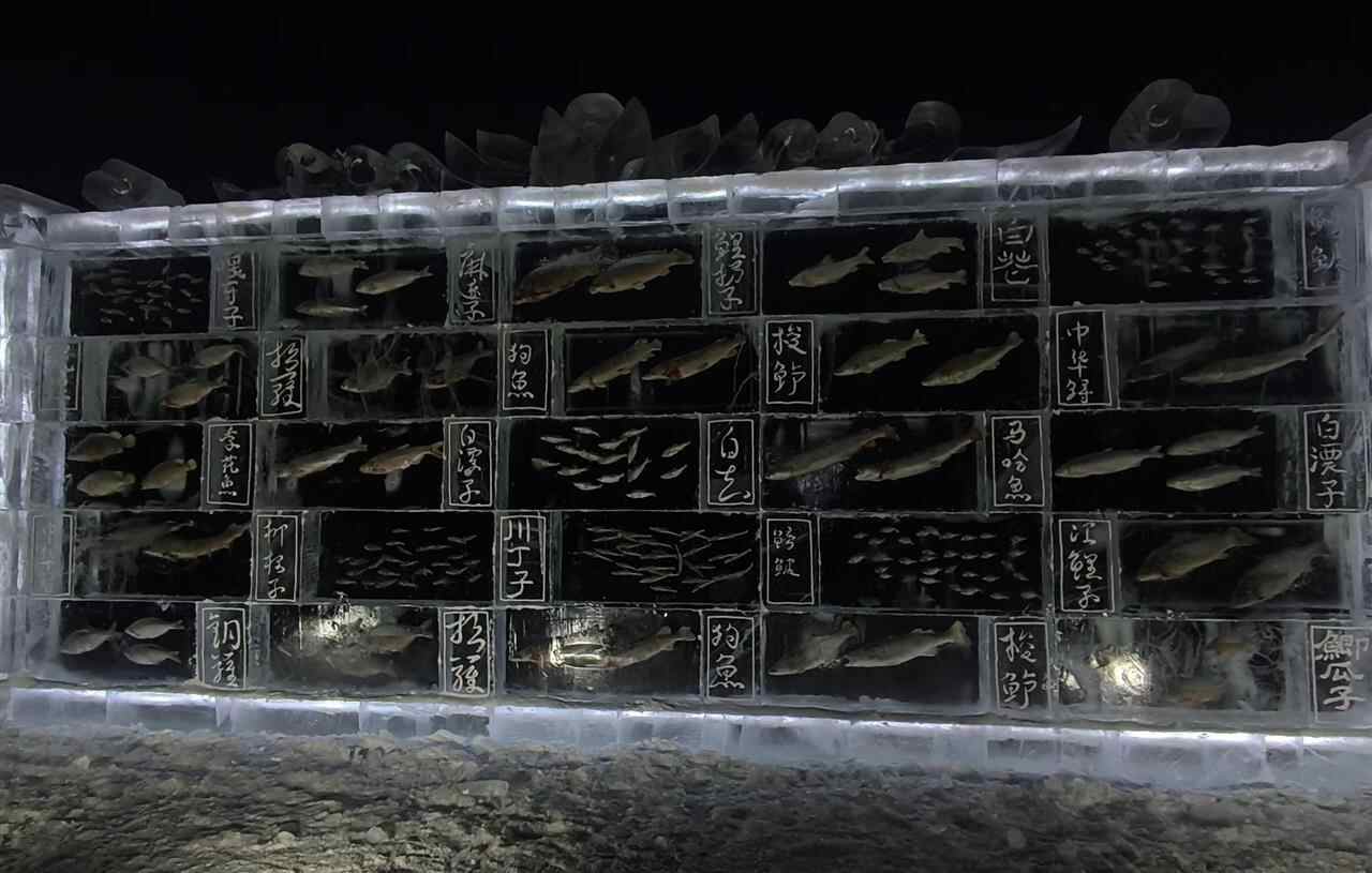 来自黑龙江同江市的王先生告诉极目新闻记者,12月30日,他在同江市三江口生态旅游区游玩时,发现江边一处空地上有一面冰墙景观,墙壁内冻着不同品种的鱼类,一旁还有名字。王先生称,这些鱼类来自黑龙江和松花江,他第一次看到该景观,便随手拍了视频记录。