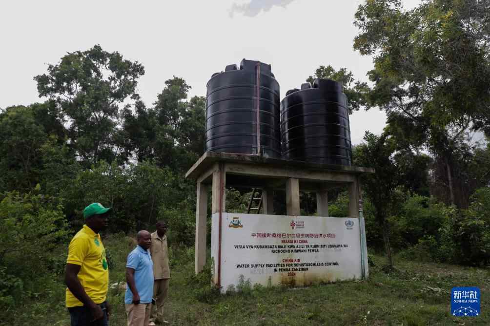 这是1月1日在坦桑尼亚桑给巴尔的奔巴岛拍摄的一处由中国援助坦桑尼亚“桑给巴尔血吸虫病防治技术项目”专家组援助建设的供水设施。它能够为当地社区提供安全用水。新华社发(赫尔曼·埃马纽埃尔摄)