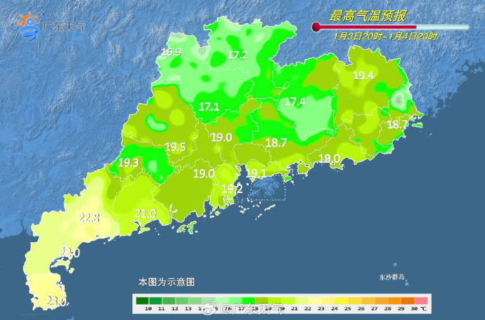 4日,广东省大部晴间多云,昼夜温差大,早晚寒冷。最低气温:粤北、珠三角北部市县2℃~5℃,其中高海拔山区-2℃~1℃,有霜冻和冰冻,粤西沿海市县10℃~14℃,其余市县6℃~9℃。