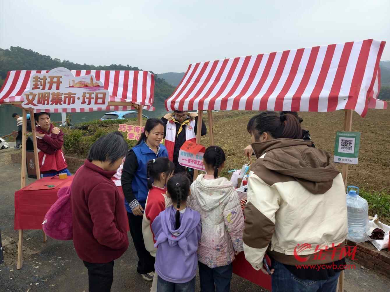 沿着活动区域漫步,浓郁的圩日烟火气扑面而来。主办方精心设置的各类摊位与体验区,让“趁圩”之旅干货满满。旅游推介摊位前,工作人员向游客详细介绍央视总台《山水间的家》拍摄之地,主持人撒贝宁曾为这里打Call,封开的山水美景与人文古迹,邀约大家探寻岭南古都的千年底蕴;“新年送祝福”摊位上,写福字、团扇拓印、剪纸等民俗体验项目人气高涨,市民游客亲手制作专属文创产品,用传统方式定格新春的美好;美食摊位前香气四溢,软糯香甜的千层糕、酸甜可口的糖葫芦、热气腾腾的关东煮等特色小食,让味蕾尽享冬日暖意。