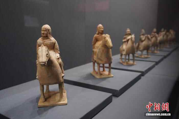 1月1日,“印迹——古代陶瓷中的马”专题展览在河南郑州大象陶瓷博物馆开展,该展览汇聚战国至唐代百余件神态各异、造型不一的陶、瓷马,再现马在中国古代历史中的多维角色与文化意义。图为展出的灰陶彩绘伎乐骑马俑。中新社记者 韩章云 摄