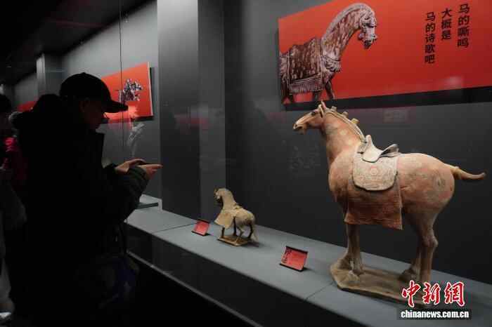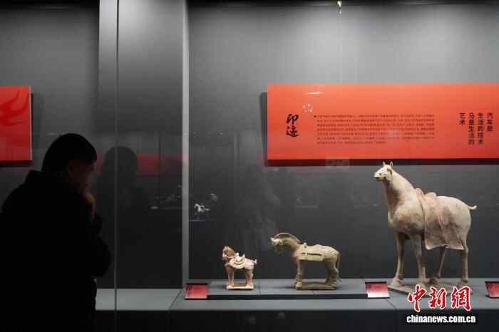 1月1日,“印迹——古代陶瓷中的马”专题展览在河南郑州大象陶瓷博物馆开展,该展览汇聚战国至唐代百余件神态各异、造型不一的陶、瓷马,再现马在中国古代历史中的多维角色与文化意义。图为观众参观展览。中新社记者 韩章云 摄