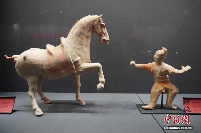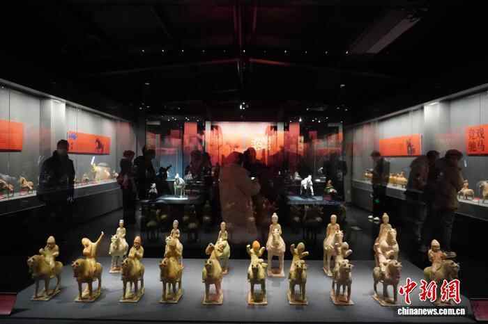 1月1日,“印迹——古代陶瓷中的马”专题展览在河南郑州大象陶瓷博物馆开展,该展览汇聚战国至唐代百余件神态各异、造型不一的陶、瓷马,再现马在中国古代历史中的多维角色与文化意义。图为展出的唐代舞马俑和训马俑。中新社记者 韩章云 摄