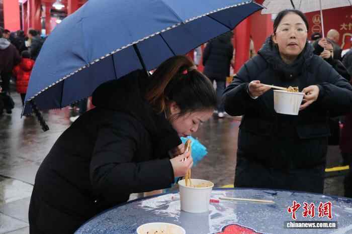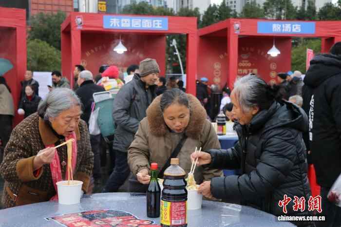 图为活动现场,民众品尝“大竹肉丁面”。曹芮铭 摄