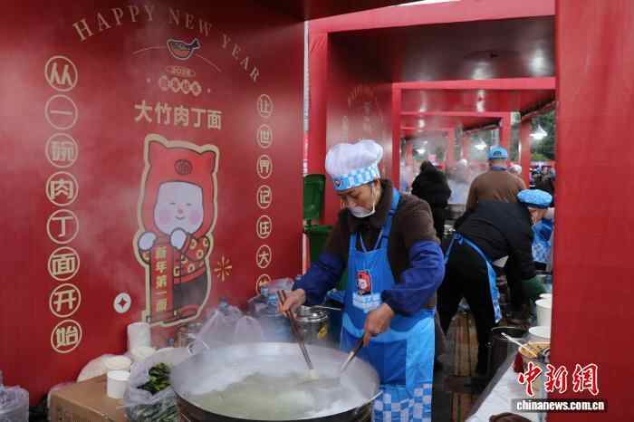 图为活动现场,工作人员煮“大竹肉丁面”。曹芮铭 摄