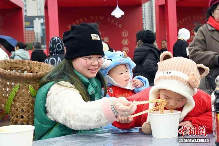 1月1日,四川省达州市大竹县举行“新年第一面·大竹肉丁面”美食嘉年华活动,“大竹肉丁面”这一地方特色美食香飘全城,吸引不少民众前来品尝。“大竹肉丁面”是当地重点培育的特色产业,已从街头巷尾的风味小吃,成长为带动民生就业、赋能乡村振兴的“致富面”。目前大竹县已形成近500家标准化面馆的规模集群,年产值突破5亿元,产品辐射深圳、成都、重庆等多个城市,成为川东美食产业中的“金字招牌”。图为“新年第一面·大竹肉丁面”美食嘉年华活动现场。(无人机照片)姚闯 摄