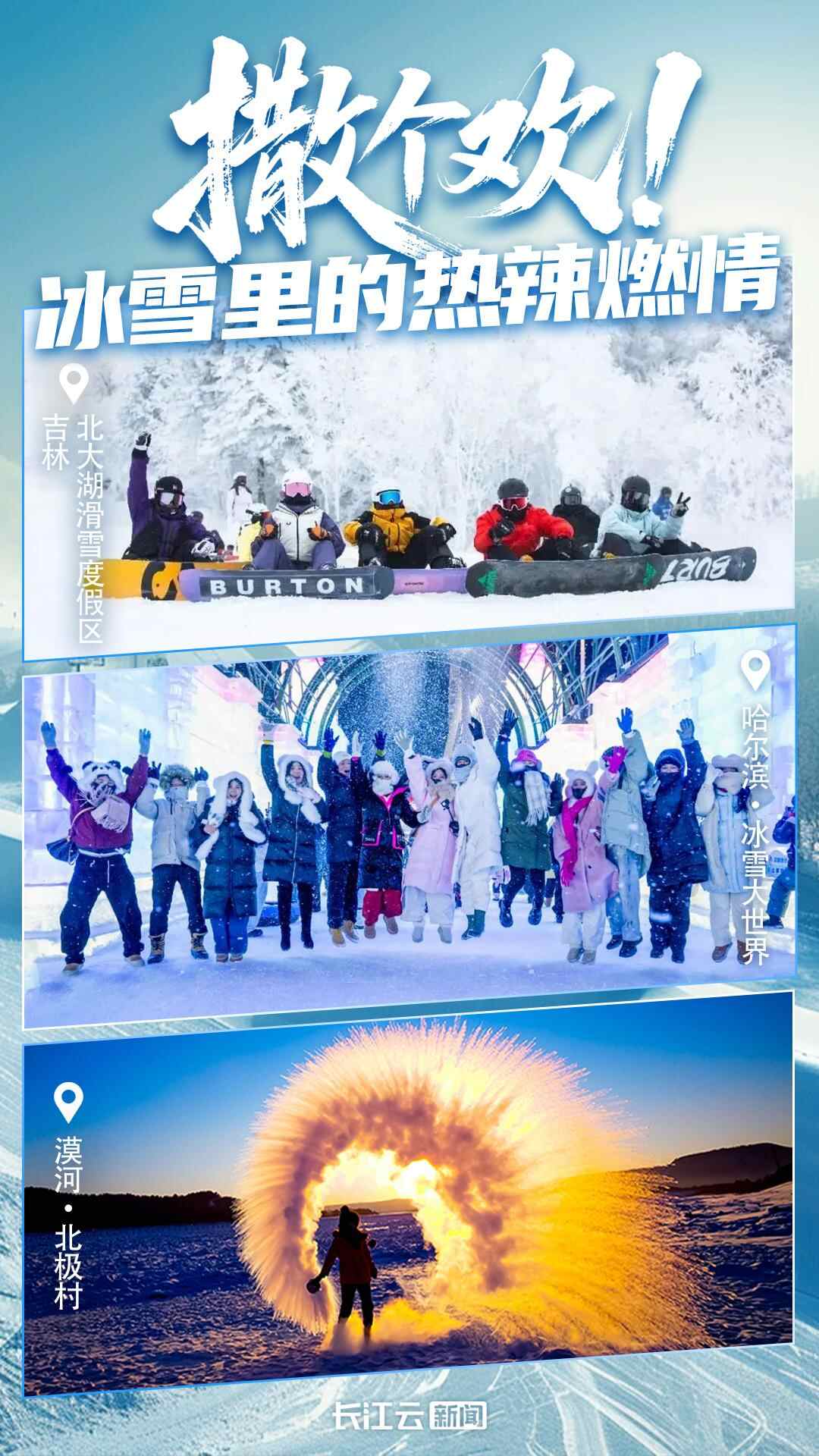 冰雪体验也不再局限于滑雪,漠河北极村的“泼水成冰”、吉林雾凇岛的“寒江雪柳”、延吉的“雪地温泉”等特色玩法关注度显著提升。