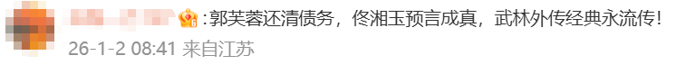 2026年1月2日,电视剧《武林外传》开播20周年。当天,“武林外传”“郭芙蓉自由了”“二十年快得很 弹指一挥间”等词条登上热搜,引发“回忆杀”。