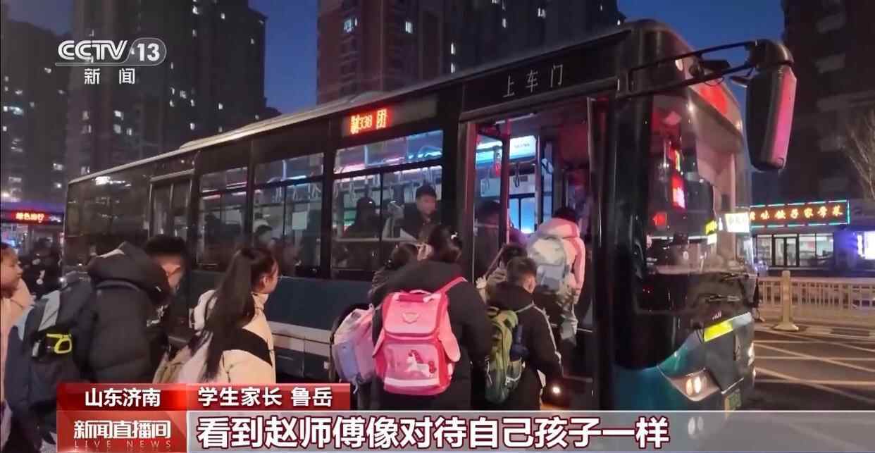 学生家长 鲁岳:我孩子上五年级了,上下学都是坐这趟车,看到赵师傅像对待自己孩子一样,心里也很踏实。