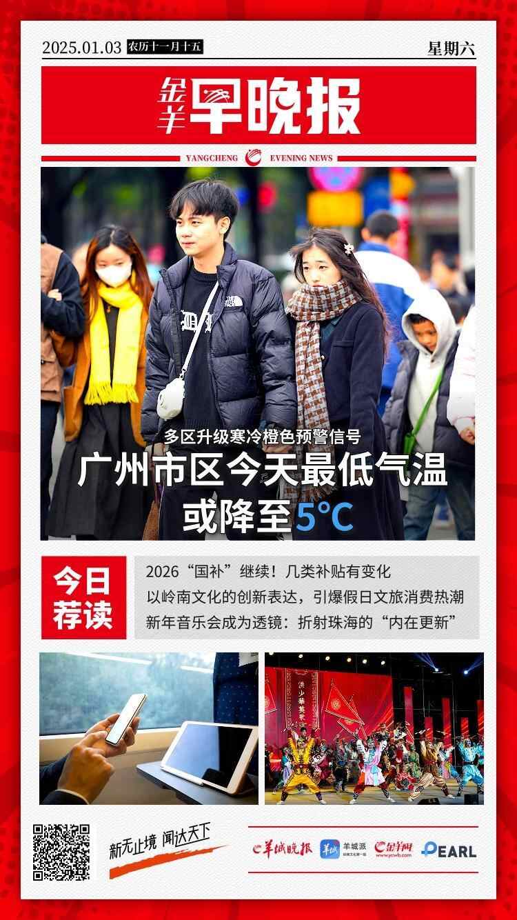 【金羊早晚报】广州多区升级寒冷橙色预警信号,市区今天最低气温或降至5°C