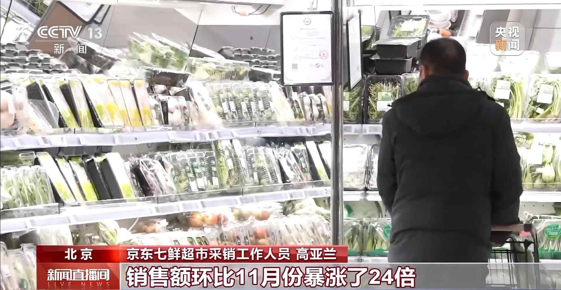 京东七鲜超市采销工作人员 高亚兰:从销售数据来看,2025年12月份翡翠甜王水果萝卜的销售额环比11月份暴涨了24倍。冰激凌萝卜、青萝卜,它们的销售额环比11月份分别增长3到5倍。