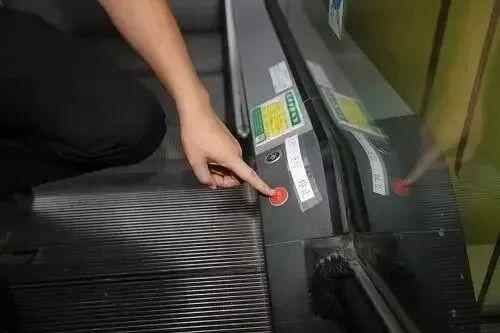 遇到紧急情况,应立即呼叫人员帮忙按下位于出入口处的红色紧急停止按钮。如果周围无人,应双手紧紧抓住扶手,抬起脚。