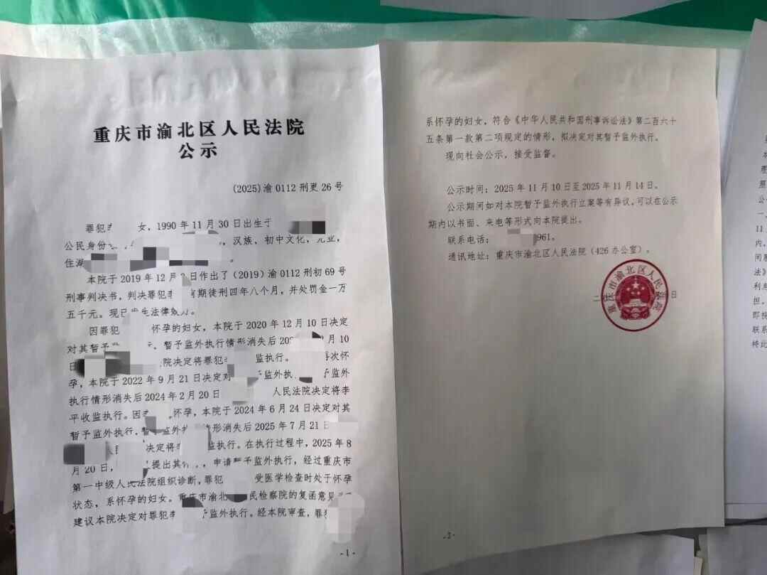 1月5日,网上流传一份重庆市渝北区人民法院的公示公告。该公告显示,1990年出生的女子李某在2019年因犯罪获刑四年八个月,随后四年她四次怀孕,被予以监外执行。此事引发讨论。