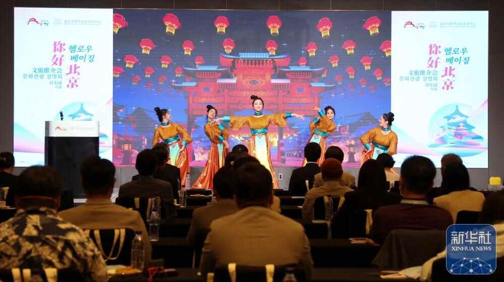 ↑2025年5月12日,演员在韩国首尔举行的“你好 北京”文旅推介会表演古典舞。