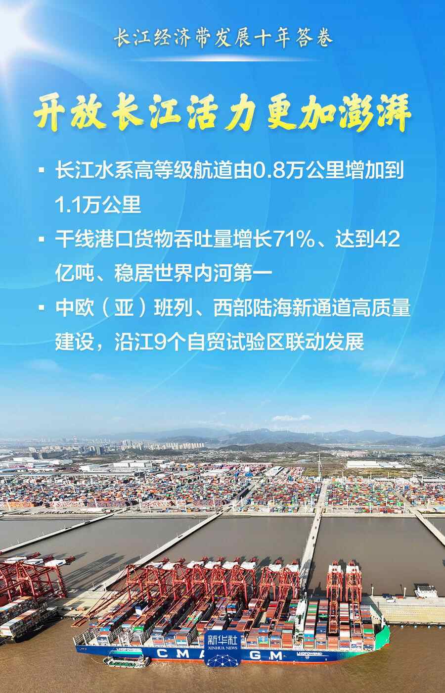 跟随这组海报,一起见证母亲河十年发展答卷,领略一江碧水向东流、发展新潮连天涌的壮丽画卷。