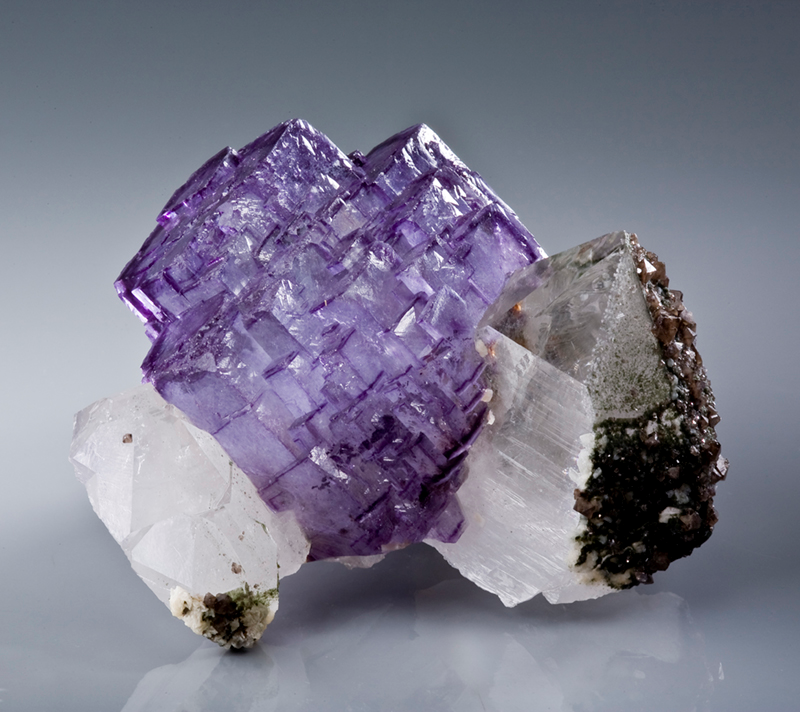 常见的白水晶是纯净的、没有缺陷的二氧化硅,当混入少量的二价铁和铬后形成绿水晶;混入致色元素二价锰和四价钛则呈现粉色,此时就是粉水晶/芙蓉石色;当其内部混入三价铁元素、四价钛元素,并经历天然辐射形成色心,外表看起来就是紫水晶;而茶晶/烟晶是因为天然辐射激活了其中的铝色心。