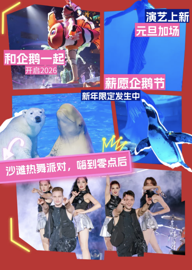海滨乐园(跨年派对)、海洋世界(企鹅互动、水下灯光秀)