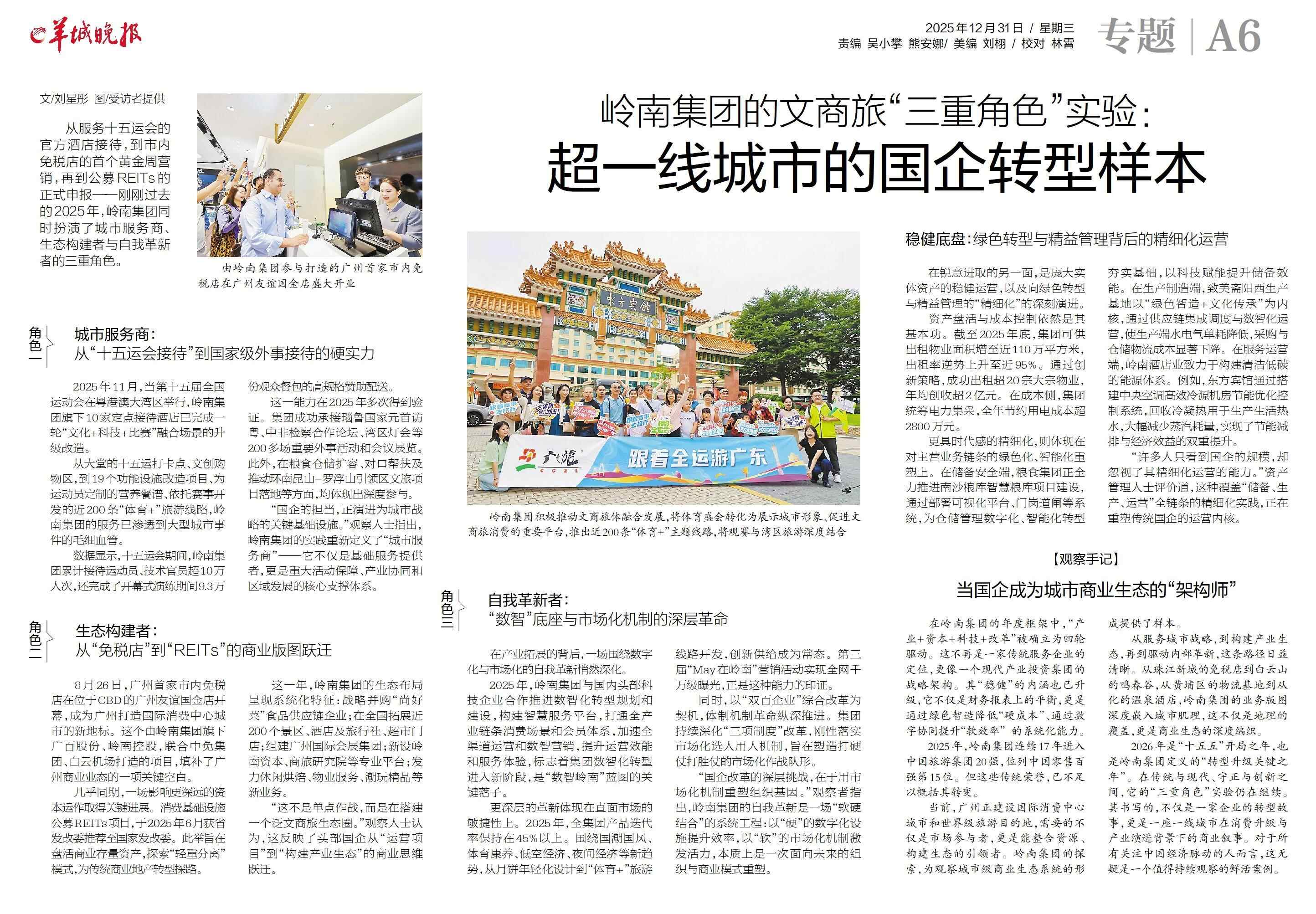 从服务十五运会的官方酒店接待,到市内免税店的首个黄金周营销,再到公募REITs的正式申报——刚刚过去的2025年,岭南集团同时扮演了城市服务商、生态构建者与自我革新者的三重角色。