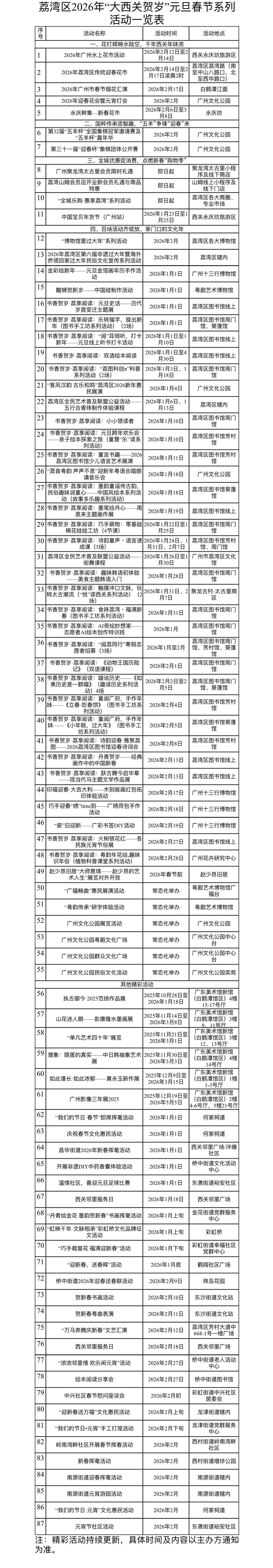 荔湾区将推出覆盖全区的“荔韵新春”文化惠民系列活动,包括全民艺术普及联盟公益课程、“客风汉韵 古乐和鸣”新年惠民展演、“荔音粤韵 声声不息”粤语合唱朗诵音乐会、“书香贺岁·荔享阅读”系列阅读推广活动等,将文化服务送到群众家门口。