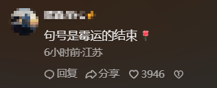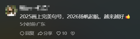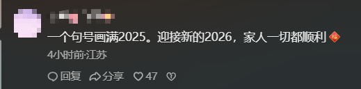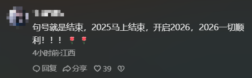 不少网友表示,句号是霉运的结束,“2025马上结束,2026一切顺利。”