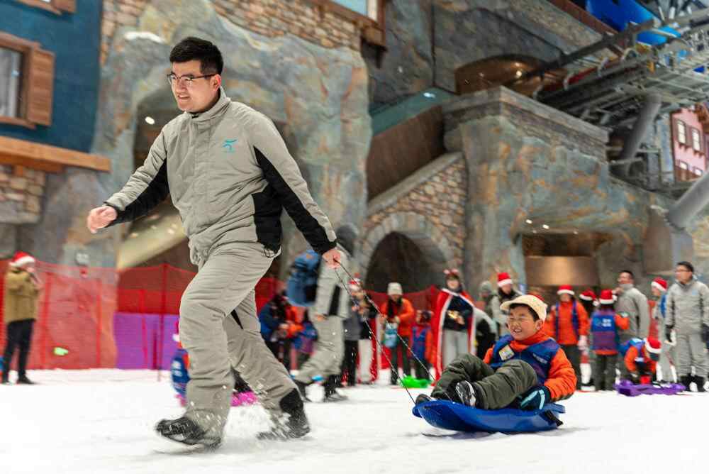 在南方城市上海,“含冰量”持续上升。位于上海临港新片区的上海耀雪冰雪世界,推出“冰雪+迎新”系列活动。雪场新增沉浸式空中演艺“奇幻雪境——星河漫雪秀”,将高空杂技、舞蹈、灯光、音乐、多媒体技术与雪景融合。憨态可掬的企鹅也将来到雪场巡游,为亲子家庭提供“科普+文旅”新体验。