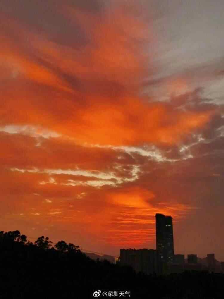 广东多地在2025年最后一个傍晚,迎来晚霞。记者12月31日傍晚在广州塔附近,看到“塔映晚霞”之景。根据深圳市气象部门官方微博转载,深圳也在12月31日傍晚,出现晚霞现象。