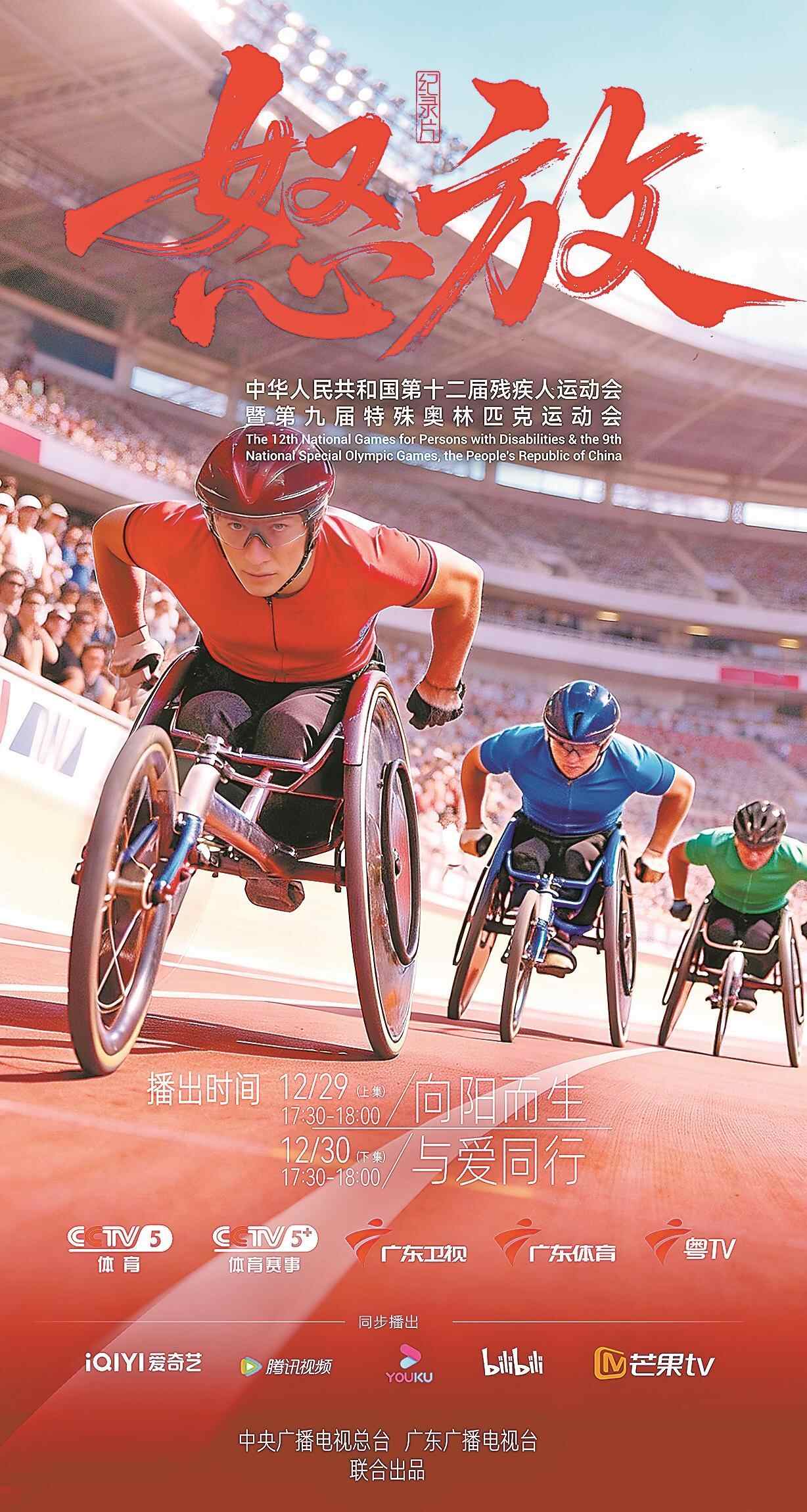 羊城晚报全媒体记者柳卓楠报道:12月29日和30日17时30分,残特奥会纪录片《怒放》将连续两天在央视体育频道、广东体育频道、粤TV重磅上线,广东卫视、爱奇艺、腾讯视频、优酷视频、芒果TV、B站等多平台同步播出,敬请收看。