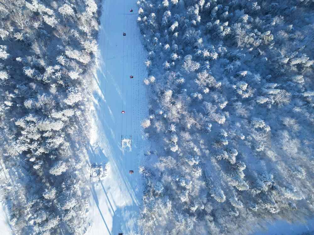 ↑这是12月2日在吉林市北大湖滑雪度假区拍摄的由北京起重运输机械设计研究院和徐州天马索道缆车设备有限公司共同研发生产的缆车(无人机照片)。据介绍,北大湖滑雪度假区的缆车国产化达90%以上。新华社记者 颜麟蕴 摄