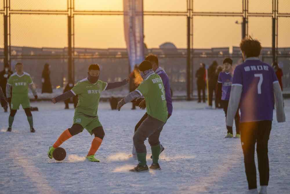 ↑12月20日,参赛球员们在大众雪地足球挑战赛中。当日,哈尔滨市“冰超”系列冰雪赛事启动仪式暨“冰雪大世界杯”2025-2026年冰城首届“冰雪绿茵”大众雪地足球挑战赛开幕式在哈尔滨冰雪大世界梦想大舞台举行。新华社记者 张涛 摄