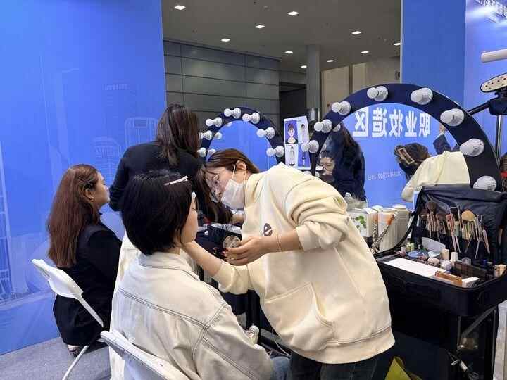12月27日,招聘会现场为求职者提供免费职业妆造服务。新华社记者 赵瑞希 摄