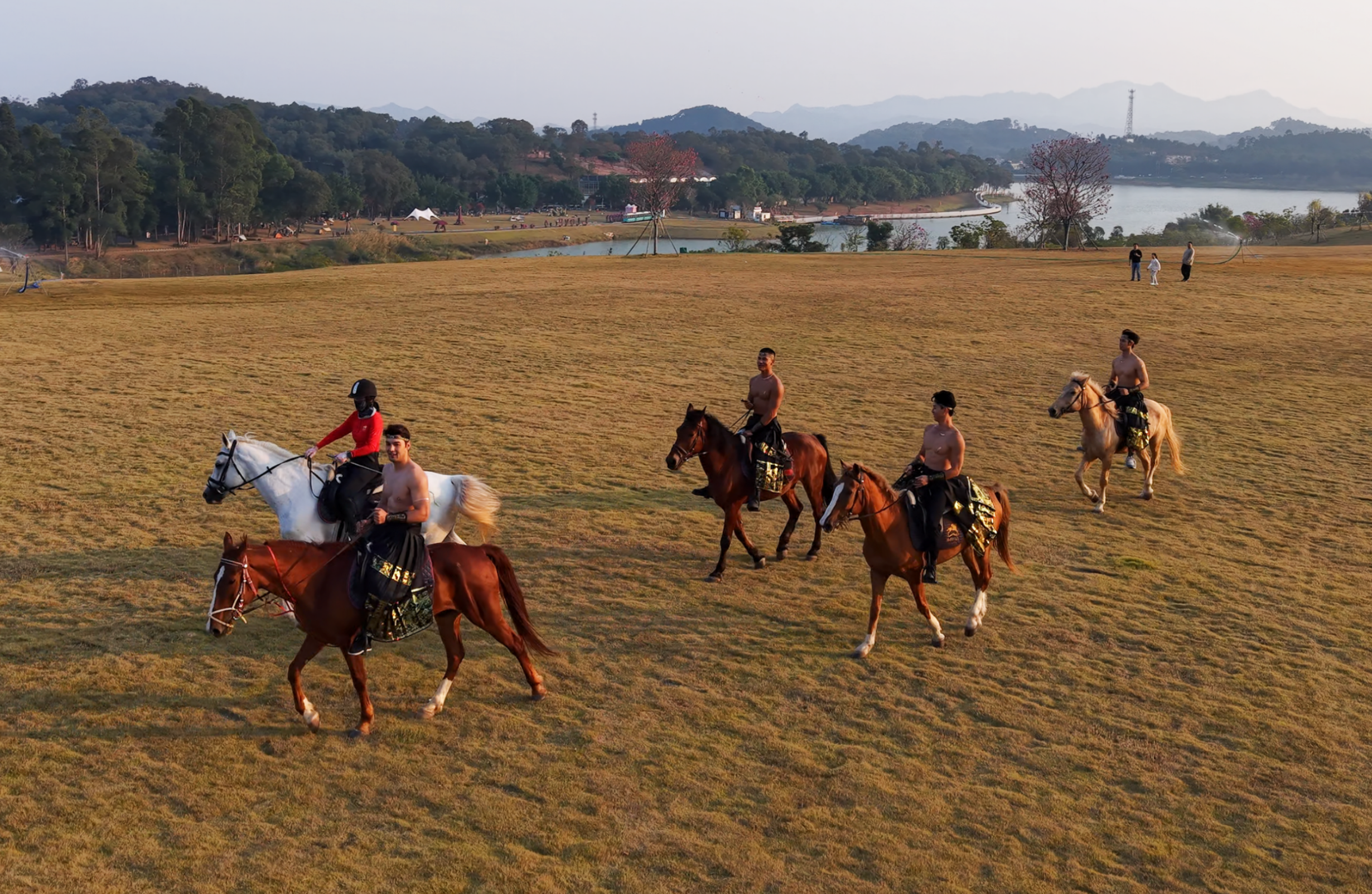 1月1日至3日,六名身着国风服饰的男模化身骑士,每日分四场沿长短两条线路巡园,途经检票口、霓裳园、心形打卡点、无动力乐园及大草原等主要景观节点。1月10日起逢周末及节假日,则将由两名骑士持续驻场互动。