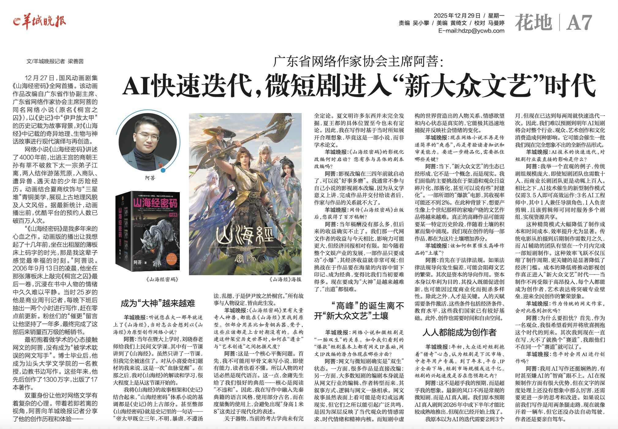 羊城晚报:AI技术的快速迭代,对短剧行业最直接的影响是什么?
