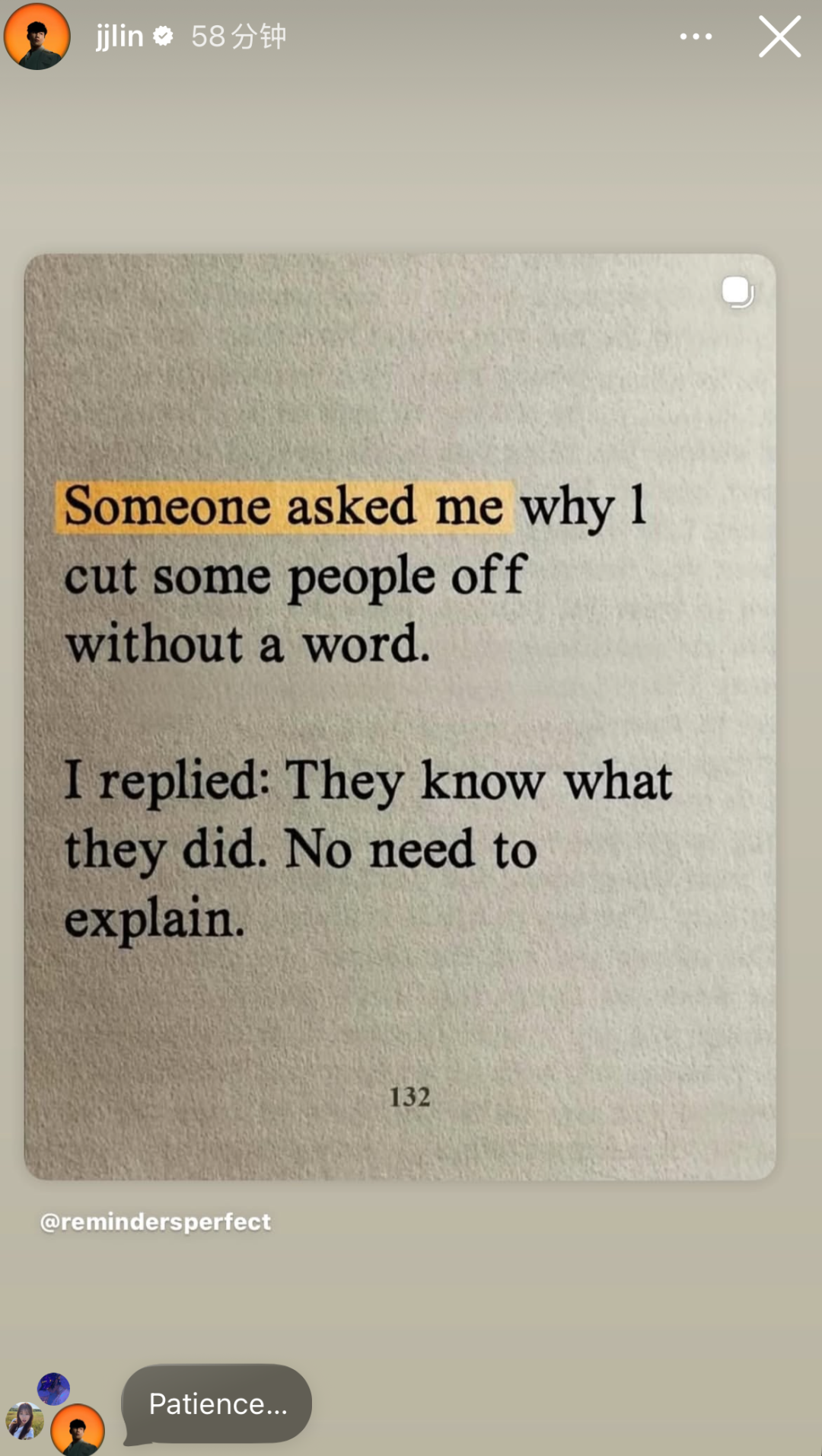 随后,林俊杰更新动态疑似回应恋情,配图上写着:“有人问我为何悄无声息地与某些人断绝来往。我答道:他们心知肚明,无需多言。” 随后又在评论补充:“耐心……”