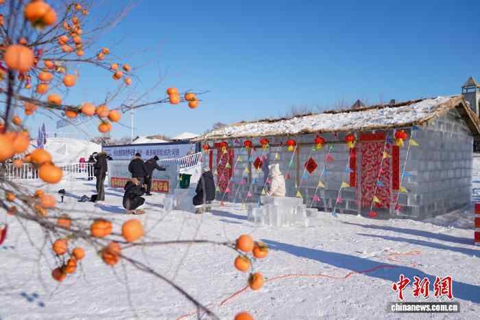 图为活动现场冰屋吸引游客。中新社记者 赵宇航 摄