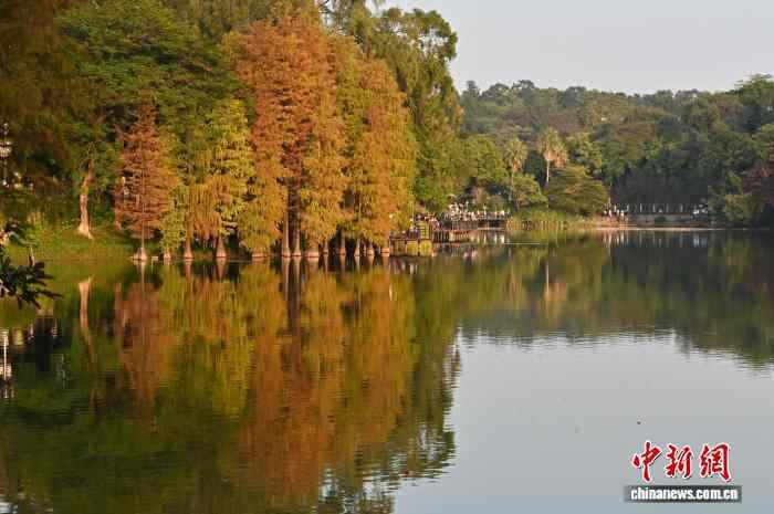 12月27日,广东省广州市麓湖公园的落羽杉换上“冬装”,由绿色转为古铜色或红褐色。中新社记者 陈楚红 摄