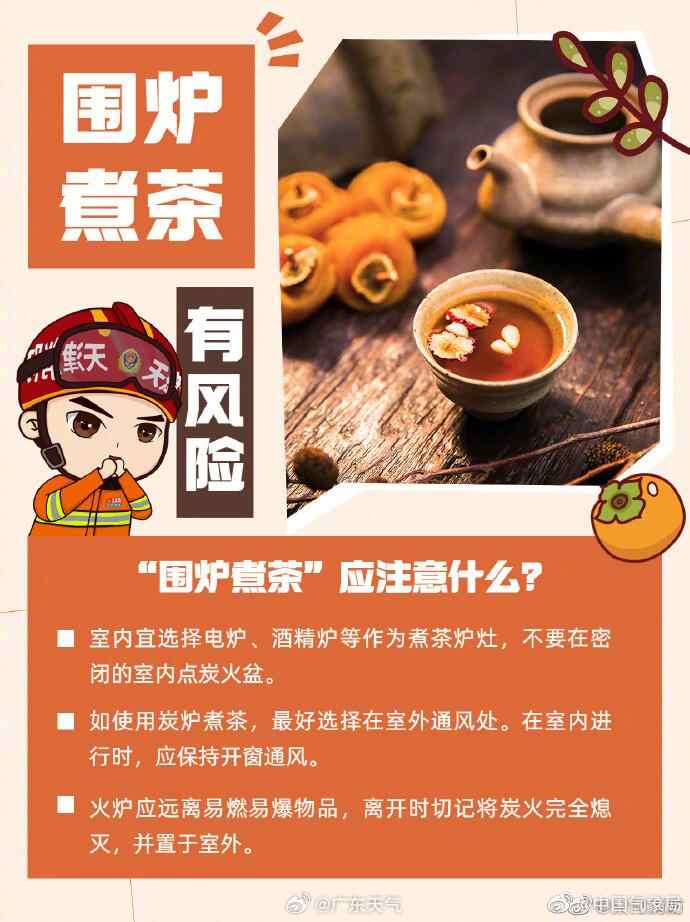 假期如果宅家不长途远行,使用炭火取暖或者是围炉煮茶时,要注意适时开窗通风,谨防一氧化碳中毒。同时森林防火也不能有丝毫松懈,毕竟没有雨水的滋润,空气相当干燥,大部分地区的火险等级依然是居高不下的状态。