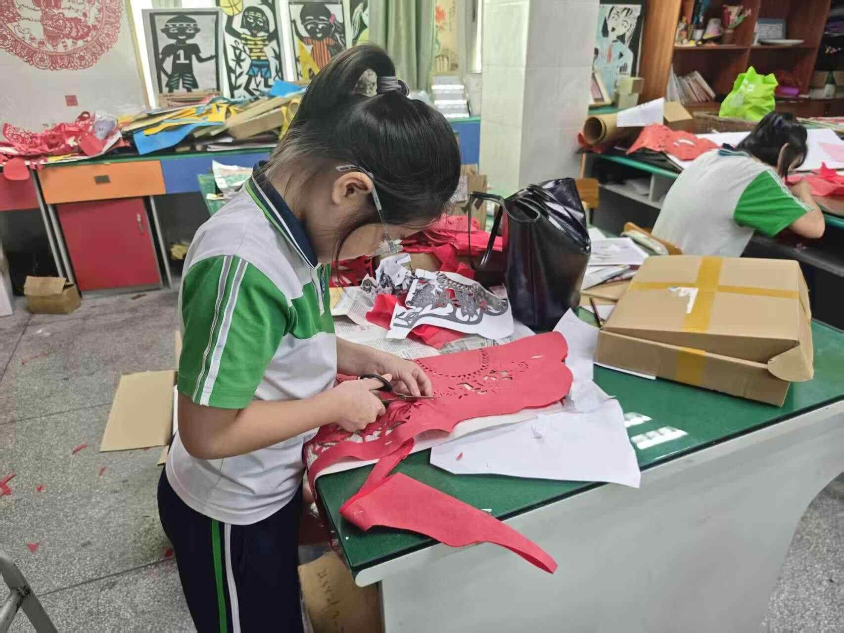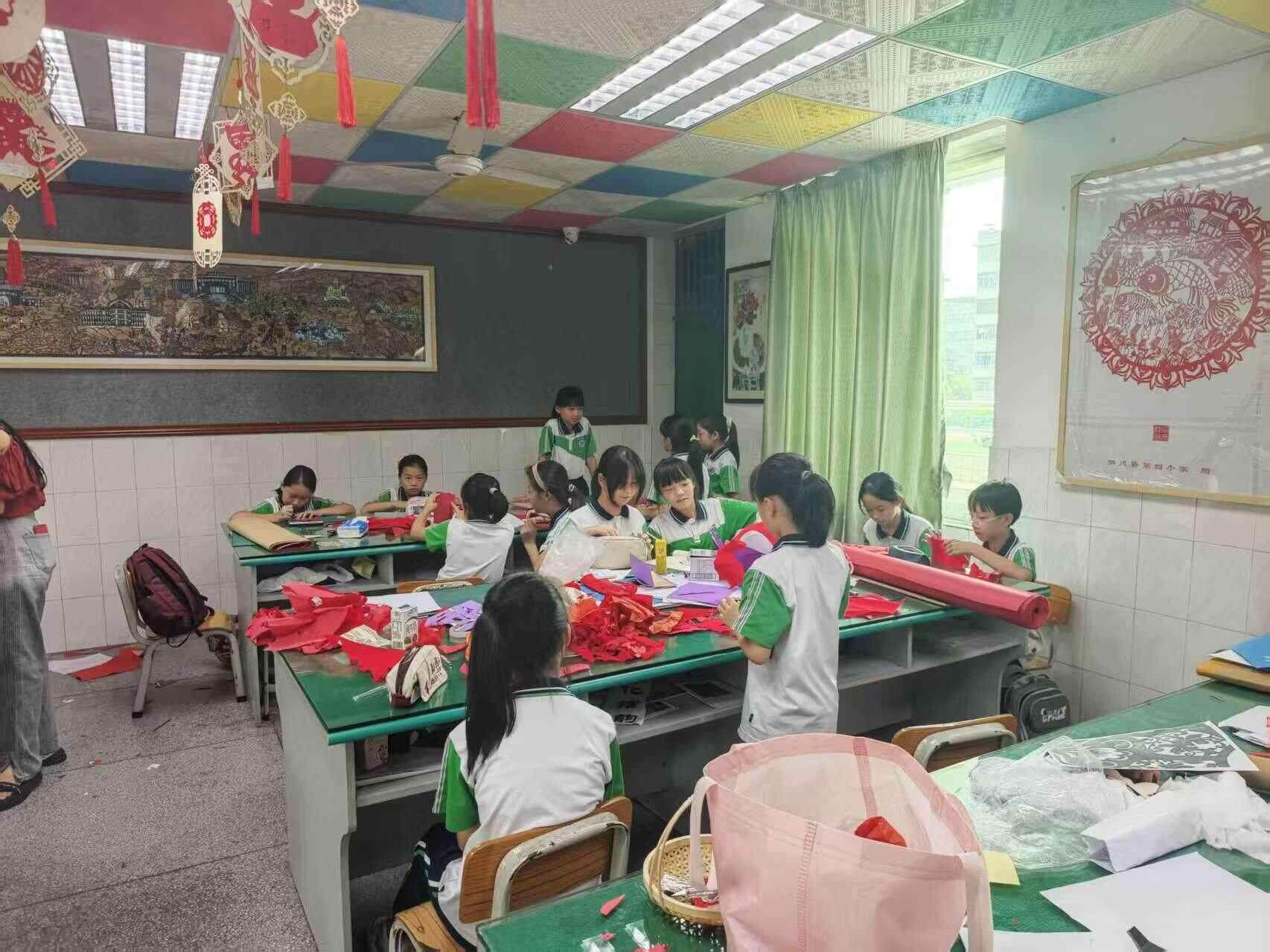 6月25日,广州青年美术家协会副秘书长刘以杰走进佛冈县第四小学,指导学生创作剪纸作品,筹备“佛冈孩子的奇思妙手乡村装置艺术展”。在这节课上,孩子们学习传统技艺,用巧手将红纸变为充满童趣的图案。这不仅是手工艺的传授,更是一次深入的文化启蒙,让同学们在动手创造中感受民间艺术的魅力。这节课让孩子们在创作中积累了审美经验与创造自信,在孩子们心中悄然播下的亲近传统、发现生活之美的种子,将孕育出扎根于乡土的艺术奇思。