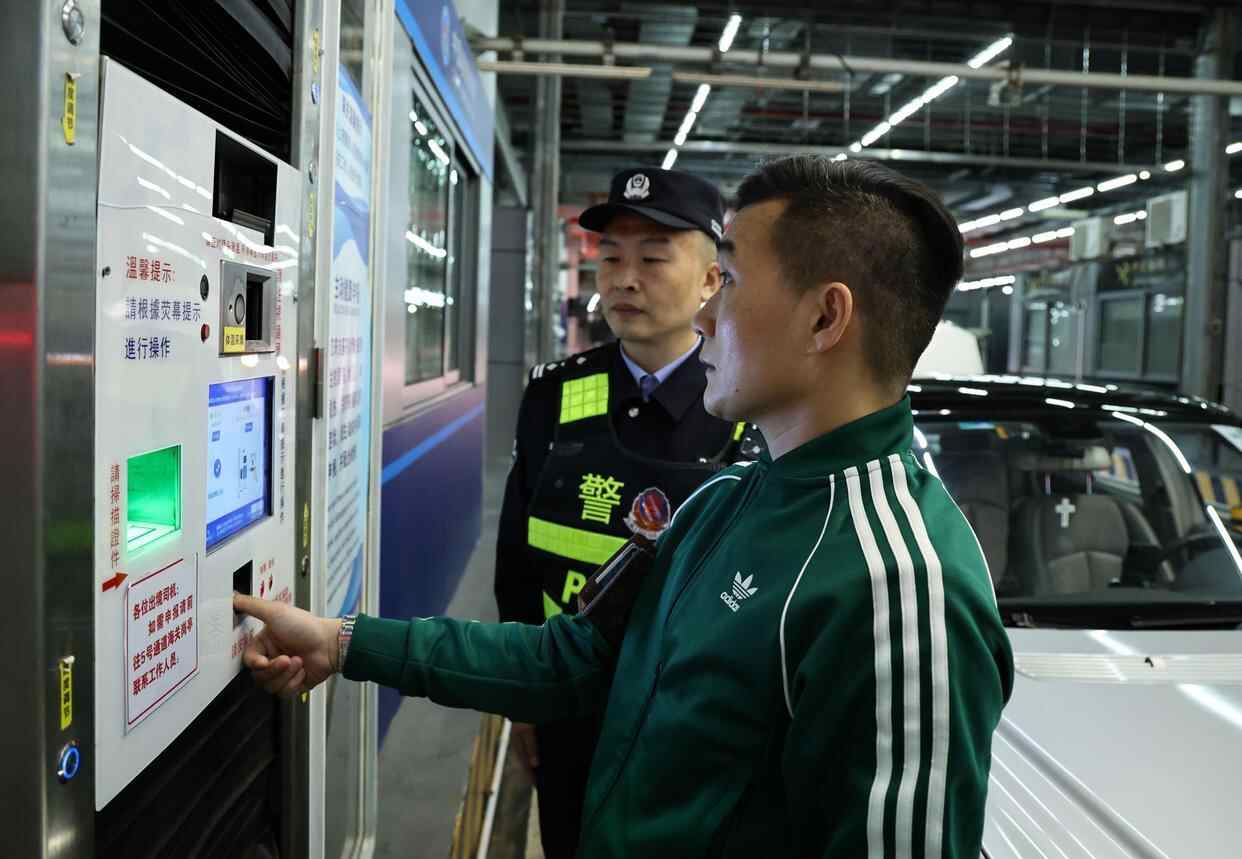 12月23日,“粤车南下”入境香港市区的首位通关车主彭先生(中)在“一站式”通道办理通关手续。新华社记者 黄国保 摄