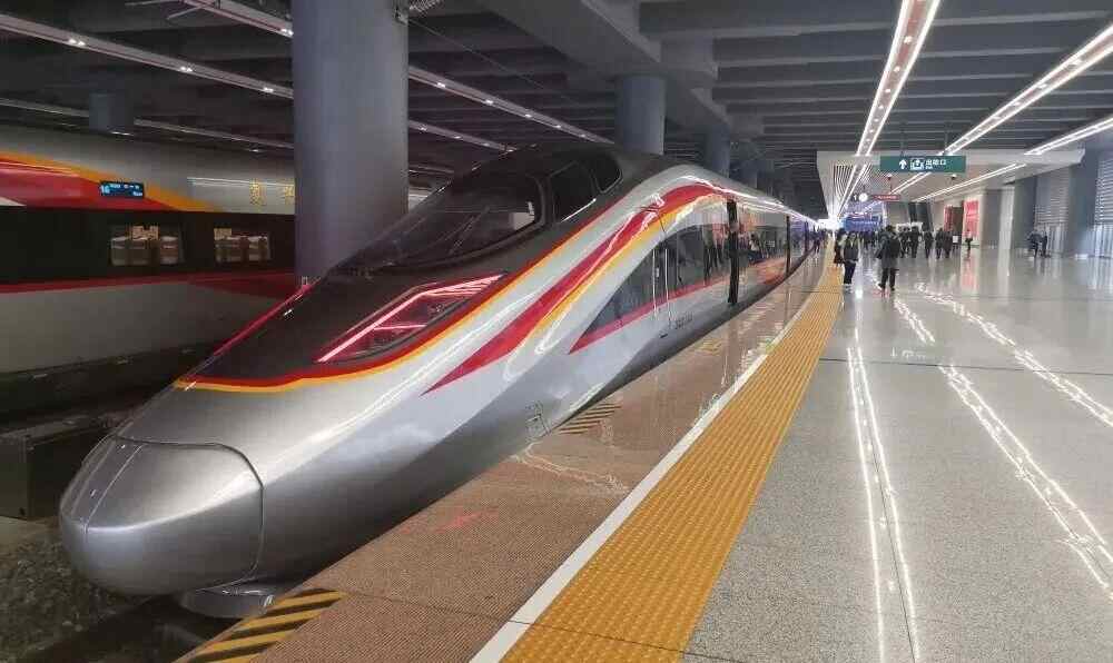 停靠在广州白云站站台上准备出发的G9785次“复兴号”列车。图源:新华社
